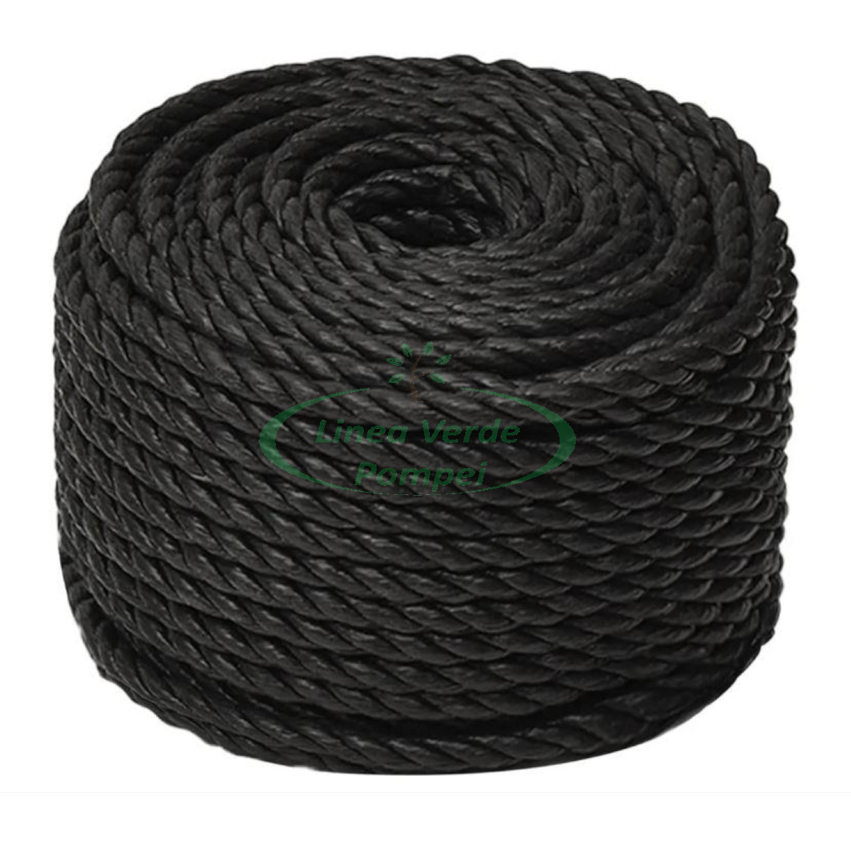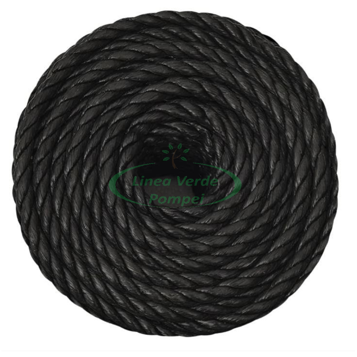 Corda diametro 10mm a 3 legnoli torti e ritorti 100% fibra di poliestere per uso nautico, pesca industria pompe sommerse prezzo al metro lineare - Colore NERO