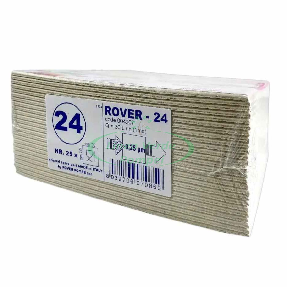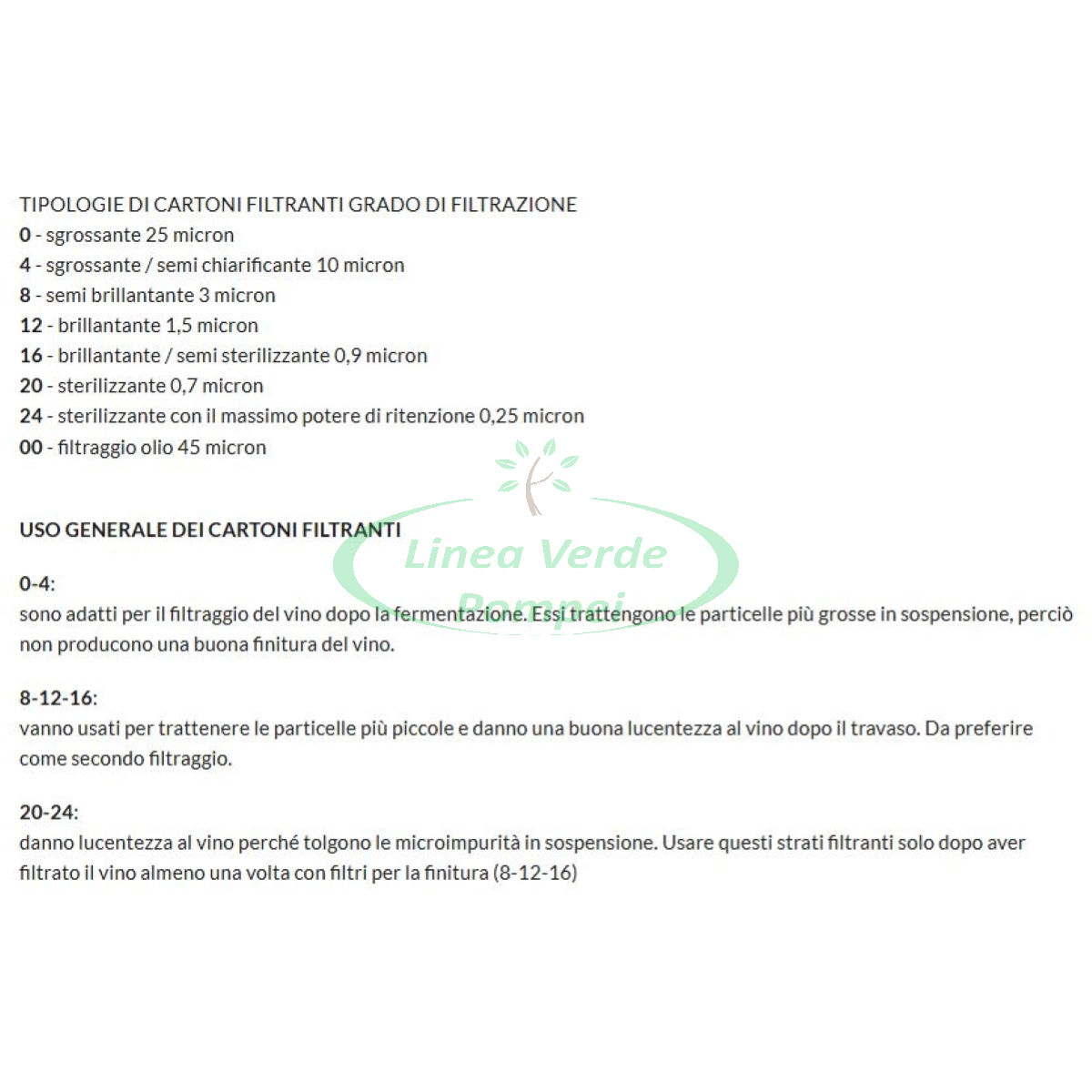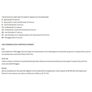 Piastre filtranti per vino Rover 24 brillantante fino 0,25 micron - portata 30litri/ora per 1mq - dimensione 20x20cm - confezione da 25 piastre in cartone cod. 004207