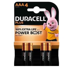 Batteria ministilo pila duracell Plus Extra Life Power Boost alcalina 1,5V Alkaline AAA conf. da 4 batterie singole