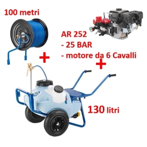 kit Carrello con cisterna a botte da 130 litri Annovi & Reverberi Car 130 + motopompa Annovi e revereberi AR252 con motore da 6 Cavalli + Avvolgitubo AR da 100 metri