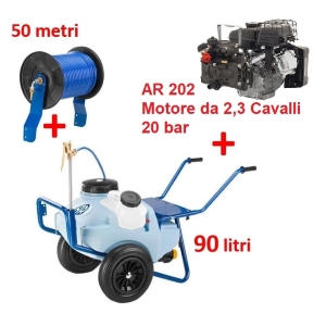 kit irrorazione carrello con cisterna a botte da 90 litri Annovi & Reverberi Car 90 + motopompa Annovi e revereberi AR202 con motore da 2,3 Cavalli + Avvolgitubo AR da 50 metri
