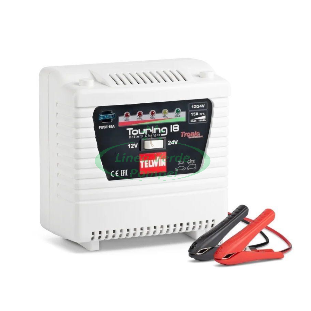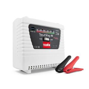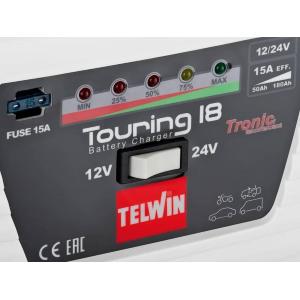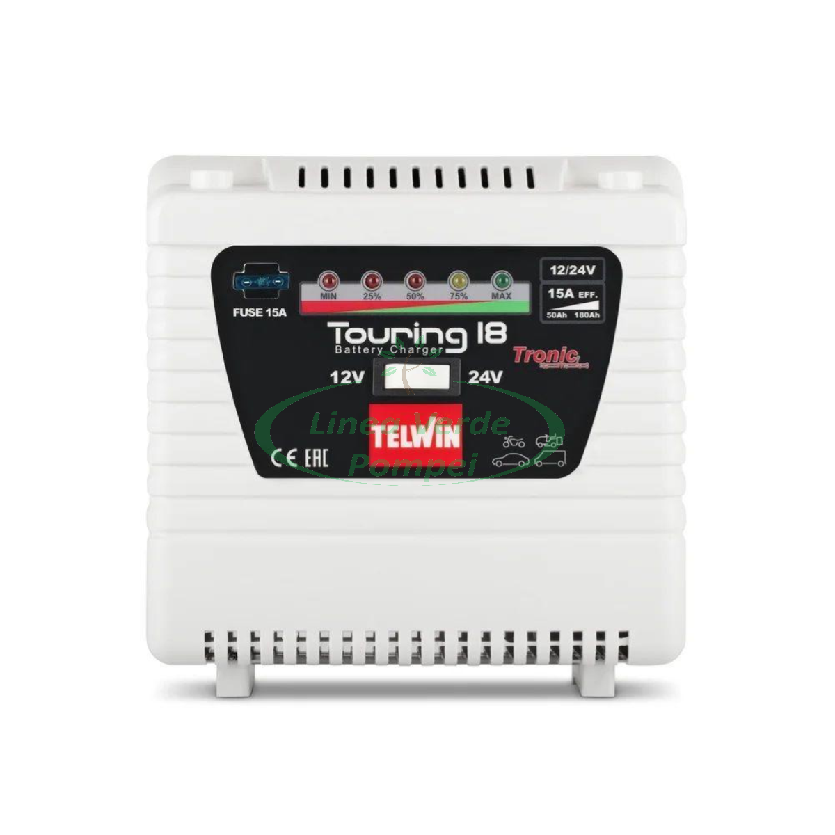Caricabatteria 12 e 24 Volt Telwin Touring 18 corrente di carica 15 Ampere per batterie da 50 AH fino a 180 AH per auto moto, trattori e camion caricabatteria