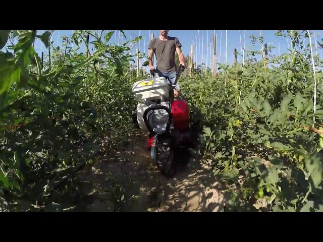 La costituzione con una sola ruota motrice anteriore permette alla macchina di girare su se stessa e di muoversi in spazi impossibili per i motocoltivatori a due ruote.
