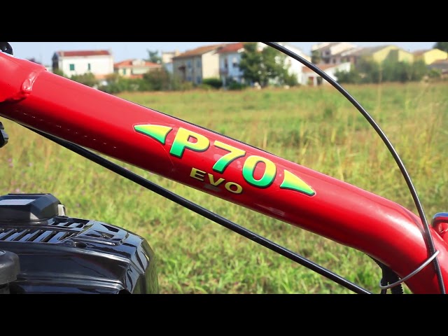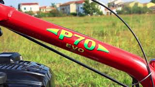 P70 EVO è estremamente robusta ed affidabile, offre un alto rendimento di lavoro in appezzamenti di medie dimensioni ed è capace, grazie ad un apposito kit, di operare in sicurezza anche su terreni scoscesi con una pendenza massima di 45°