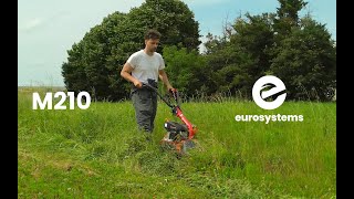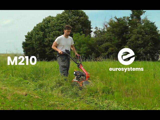 Motofalciatrice Eurosystems M210 RV170 con motore Rato 170 cc / potenza 4 cavalli = 3.2 kW, avviamento a strappo completa di barra falciante bilama 87 cm con slitte