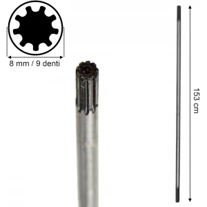 Albero di trasmissione con 9 denti - ricambio per decespugliatori - diametro dell'asta 8mm x lunghezza 153 centimetri - per decespugliatore STARS - Profy 26, 34, 43, 52 e similari